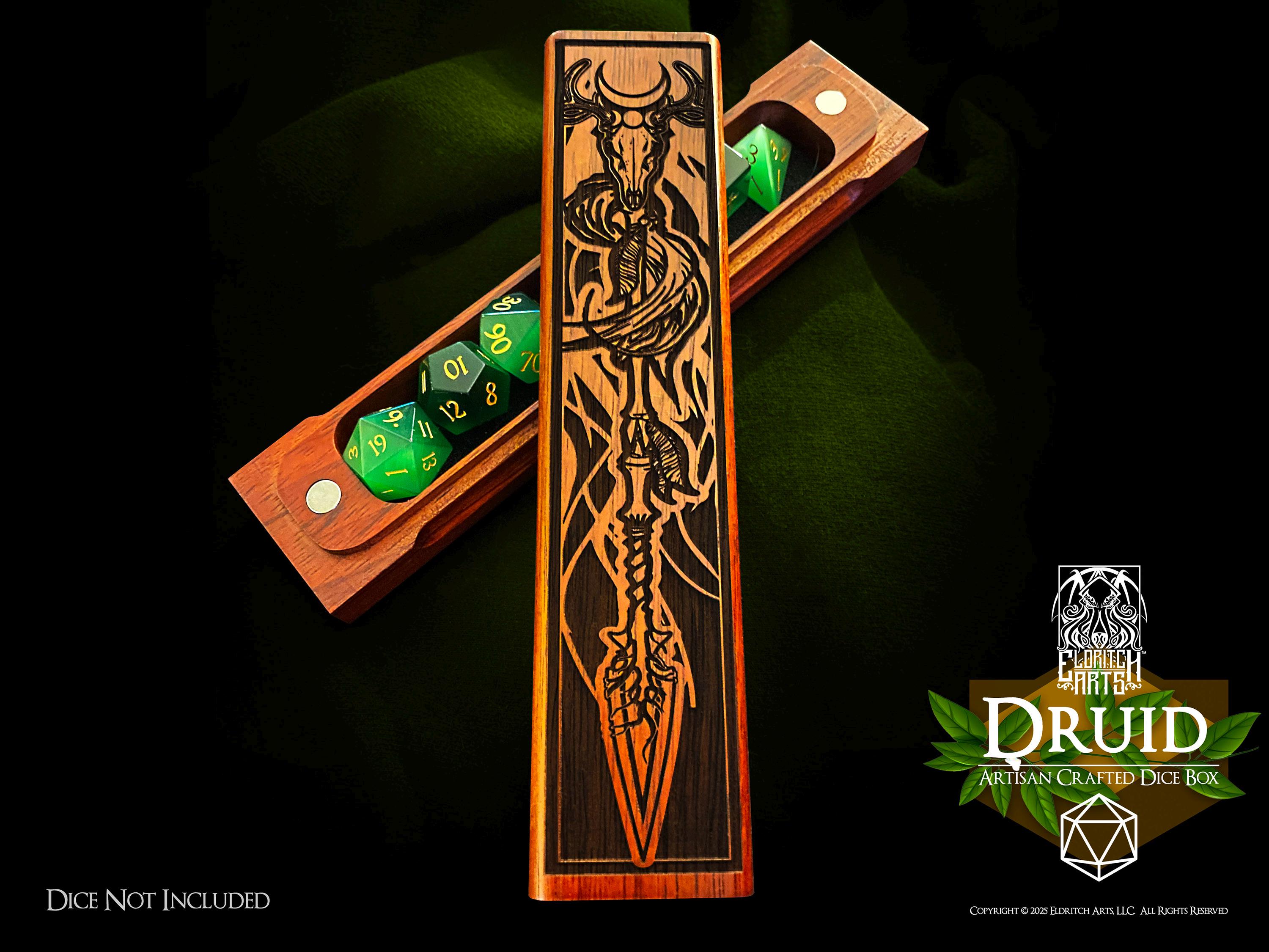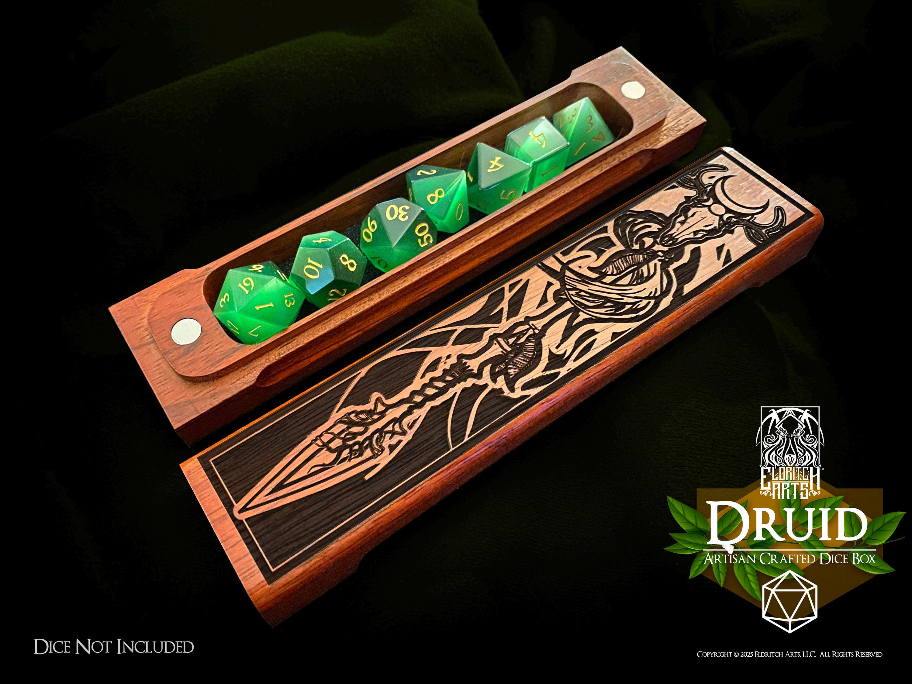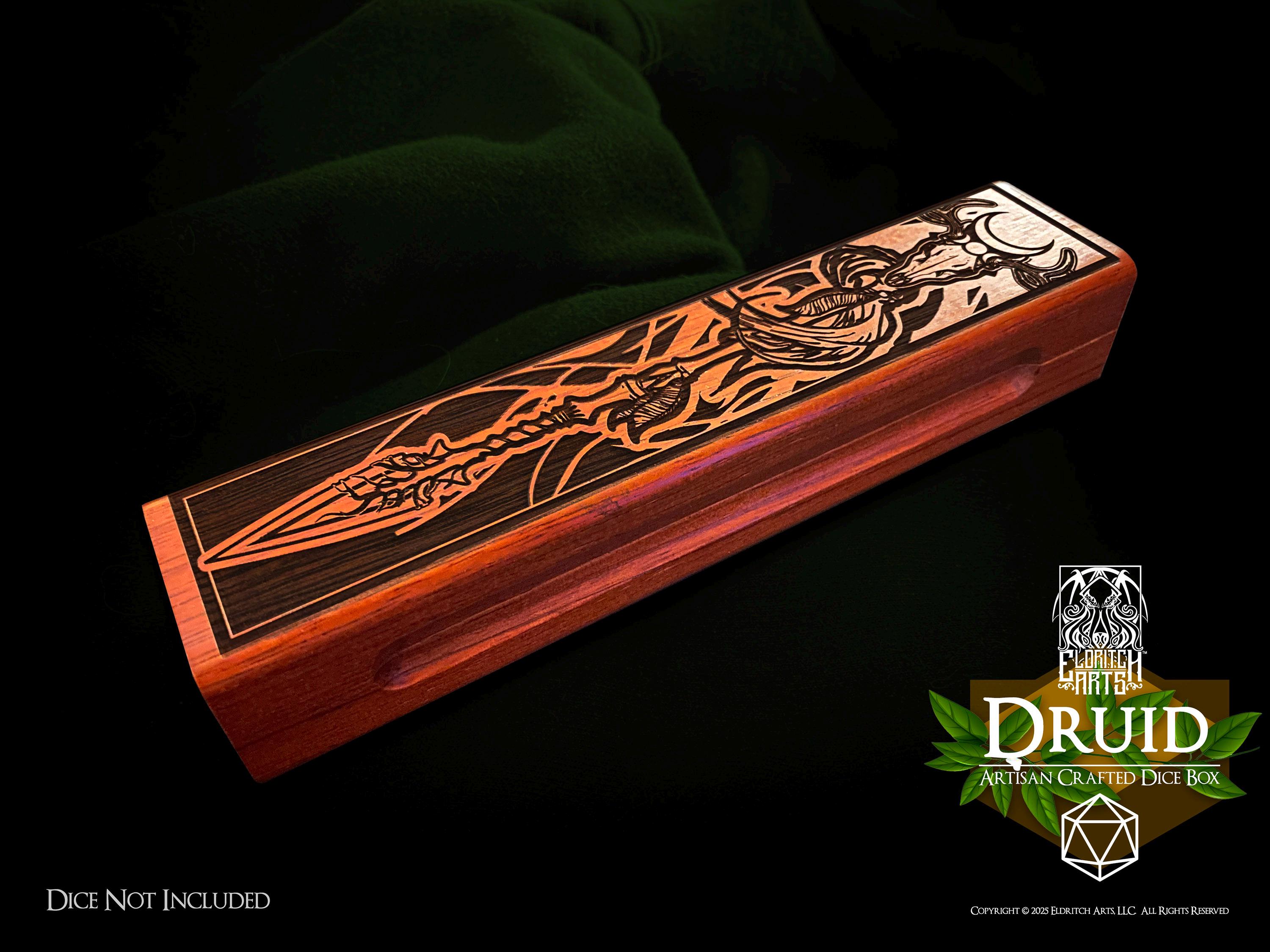 A handcrafted dice box made from solid Brazilian Cherry (Jatoba), built to last a lifetime. Perfect for players of D&D, Pathfinder, or any tabletop RPG. Store and protect your dice in style, or personalize it with custom engraving. Also makes a wonderful and lasting gift for that special player or DM in your life.