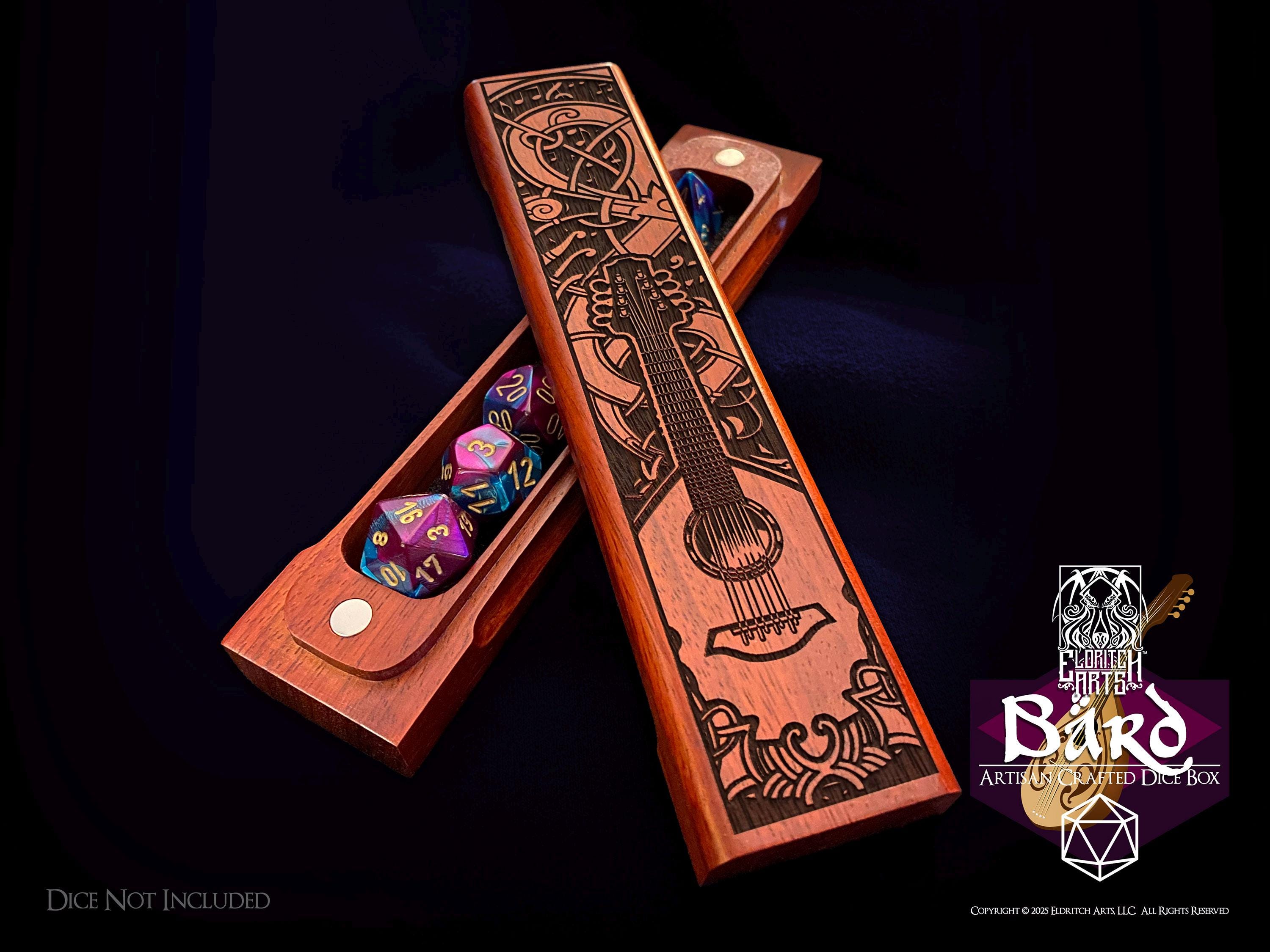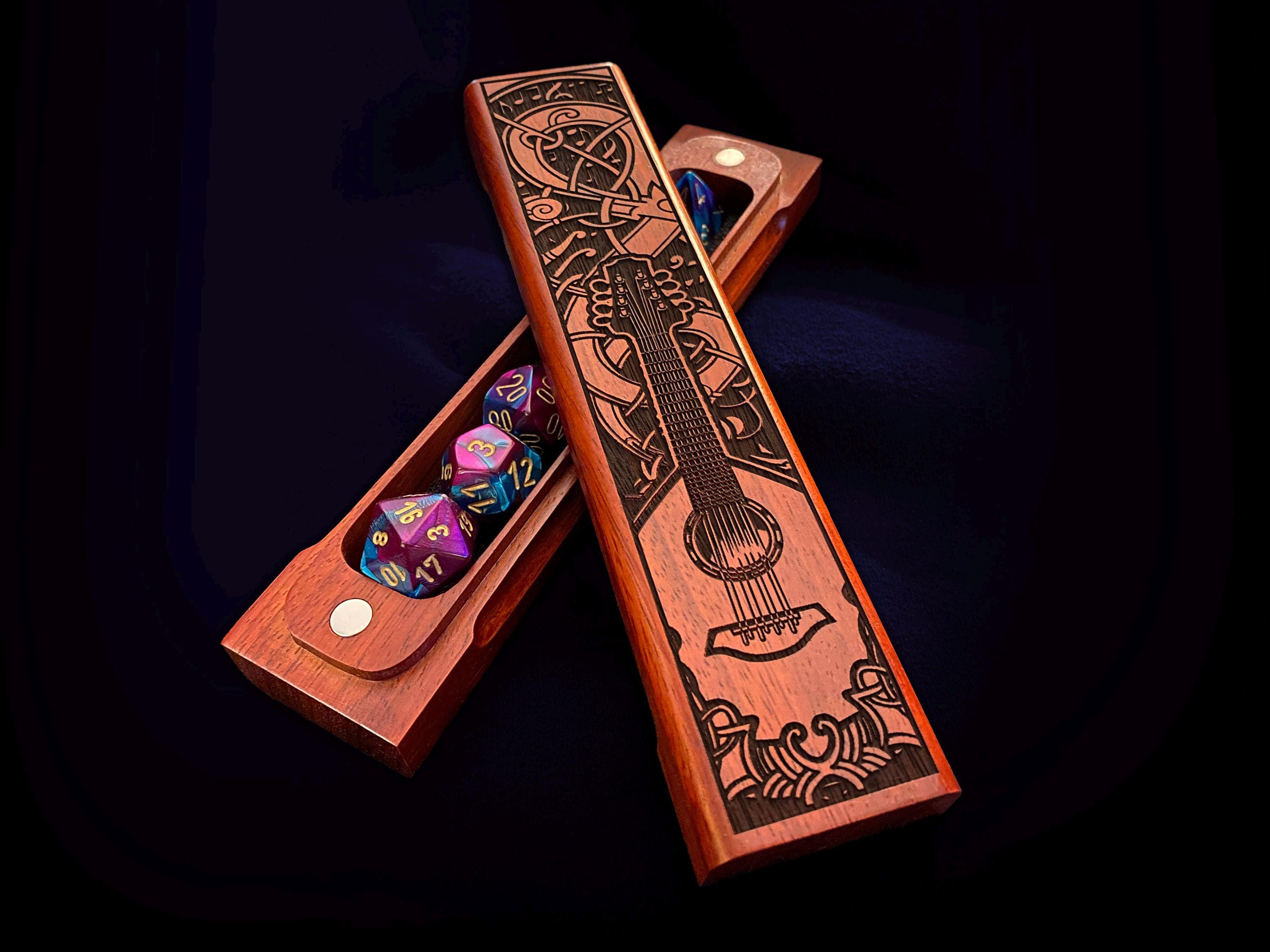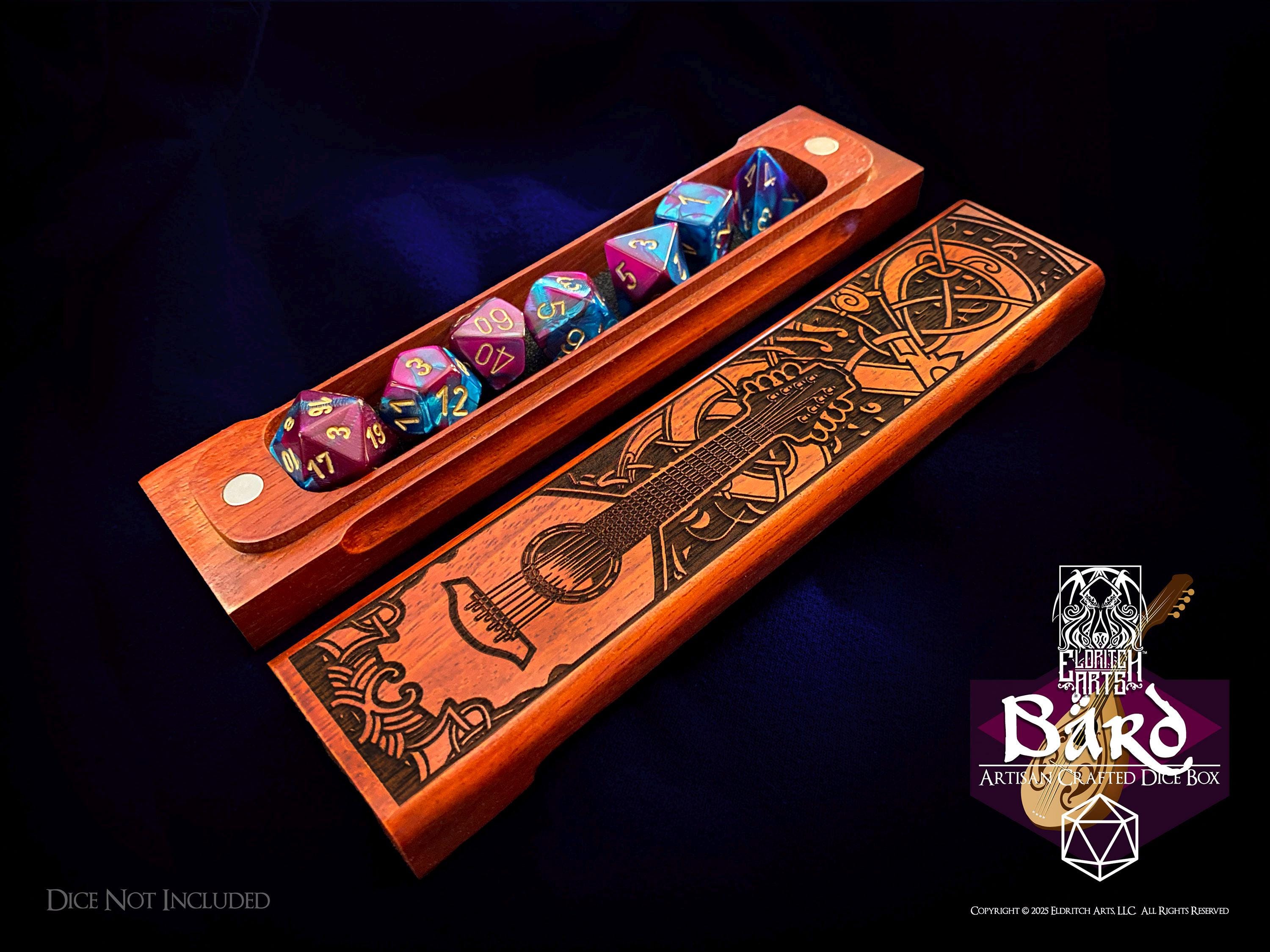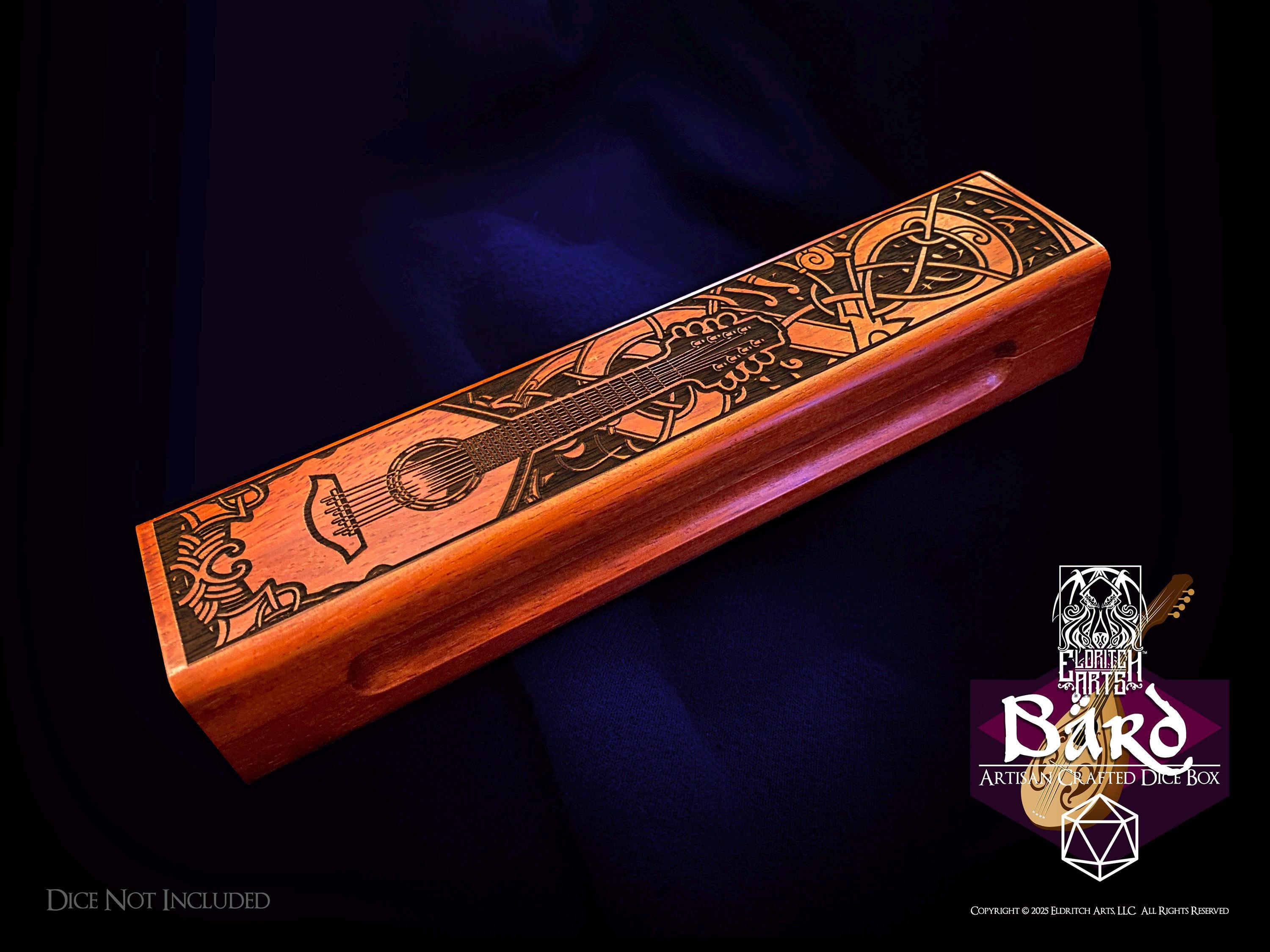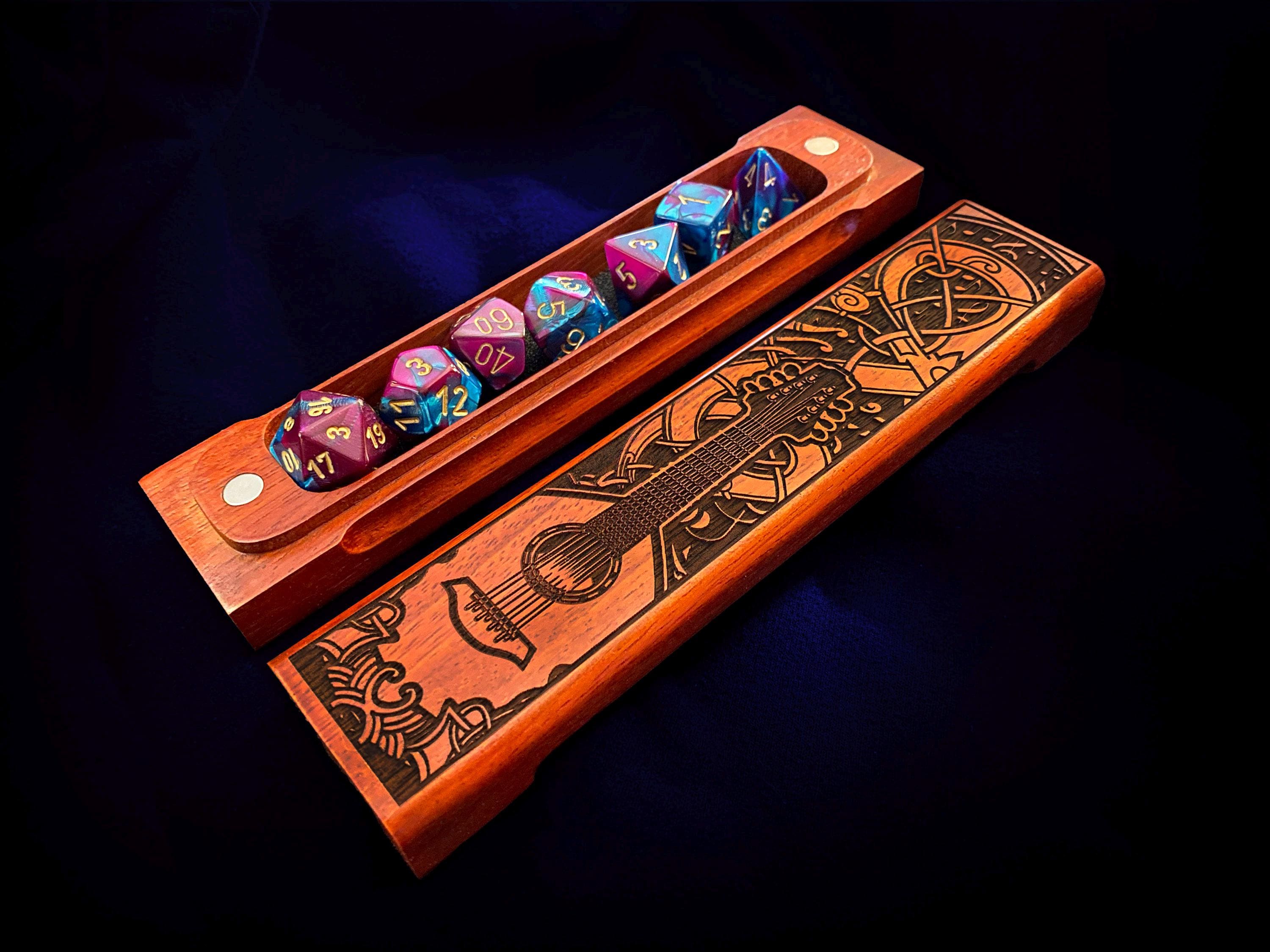 A handcrafted dice box made from solid Brazilian Cherry (Jatoba), built to last a lifetime. Perfect for players of D&D, Pathfinder, or any tabletop RPG. Store and protect your dice in style, or personalize it with custom engraving. Also makes a wonderful and lasting gift for that special player or DM in your life.